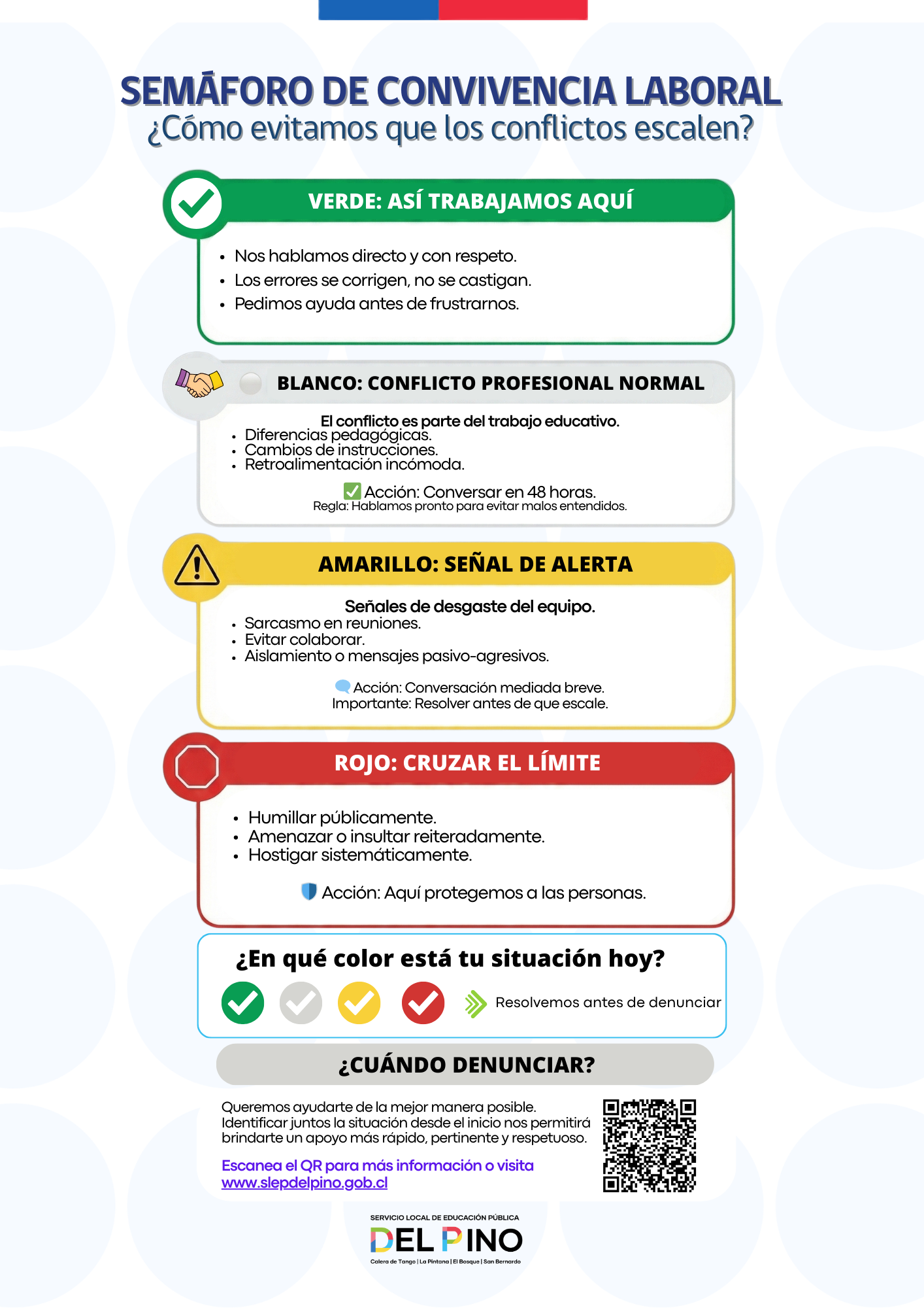 • Cobertura universal y objetivo: El protocolo rige para todo el personal del SLEP Del Pino y busca proteger la dignidad en el trabajo.